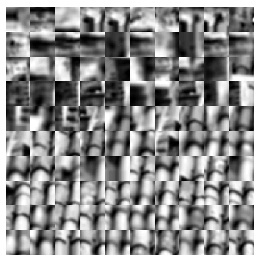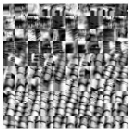 vl_imarraysc(reshape(patches(:,1:10*10), w,w,[])) ;